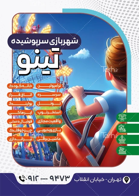 نمونه تراکت آماده شهربازی با فرمت psd و قابل ویرایش در نرمافزار فتوشاپ بهصورت لایه باز توسط تیم طراحان طرح دات آی آر طراحی شده است. در نمونه تراکت شهربازی از تصاویر و المانهای باکیفیت و متناسب با استاندارد چاپ استفاده شده، همچنین نکات مهم در طرح تراکت شهر بازی مانند رنگبندی، رعایت حاشیه، فاصلهها، فضای کافی برای درج متن، سایز و نوع فونت مناسب طراحی تراکت و ... رعایت گردیده است. طرح لایه باز تراکت پارک و شهر بازی شامل وکتور شهربازی میباشد که المانهای استفادهشده در طرح تراکت پارک و شهربازی قابلیت ویرایش، جابهجایی و تغییر سایز را دارا بوده و شما میتوانید متناسب باسلیقه خودتان تراکت لایه باز شهربازی را ویرایش نمایید، همچنین با تغییر تصاویر و متنها میتوانید طرح تراکت شهربازی سرپوشیده را به طرح تراکت کسب و کار مد نظر خود شخصی سازی نمایید.