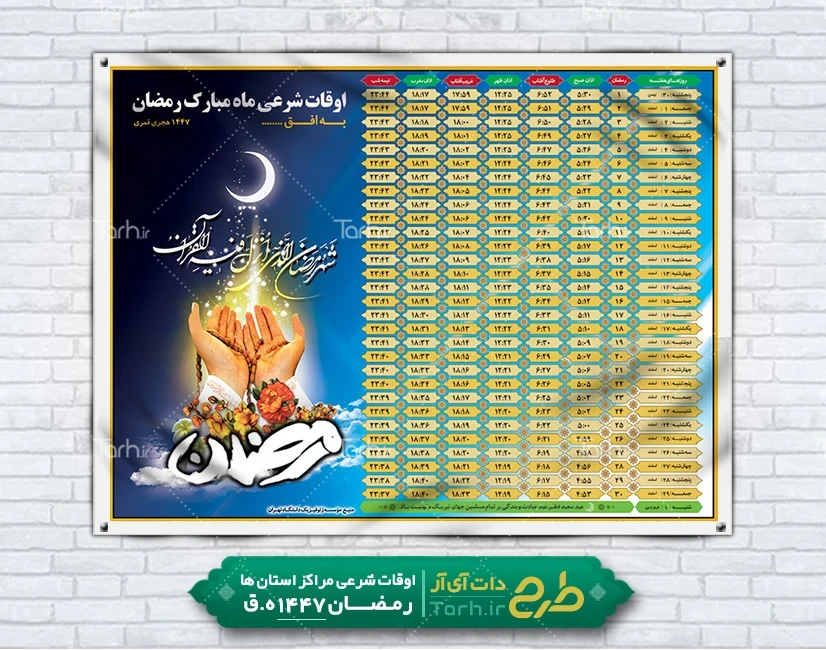 دانلود بنر اوقات شرعی ماه مبارک رمضان شامل جدول اوقات شرعی رمضان کد فایل 3695874