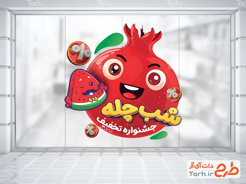 ابعاد قابل چاپ طرح لایه باز استیکر فروش ویژه شب یلدا و کاربرد آن