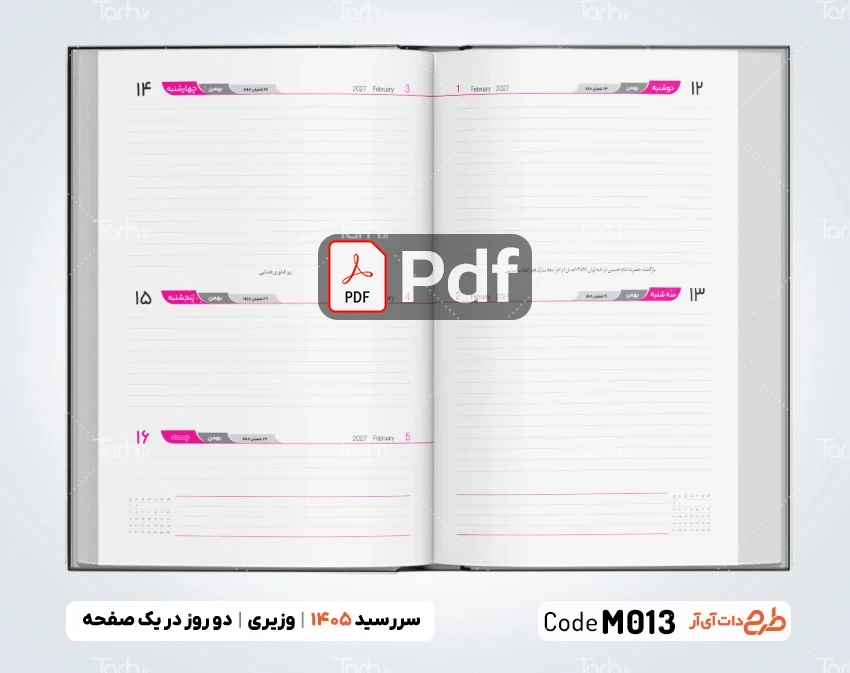 فایل pdf سررسید وزیری دو روز در یک صفحه (کد M013) به صورت پی دی اف