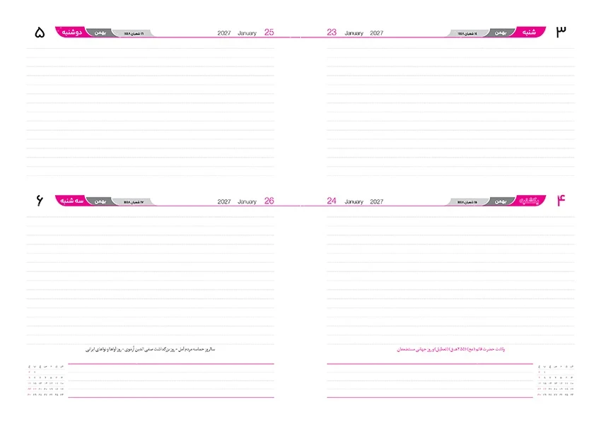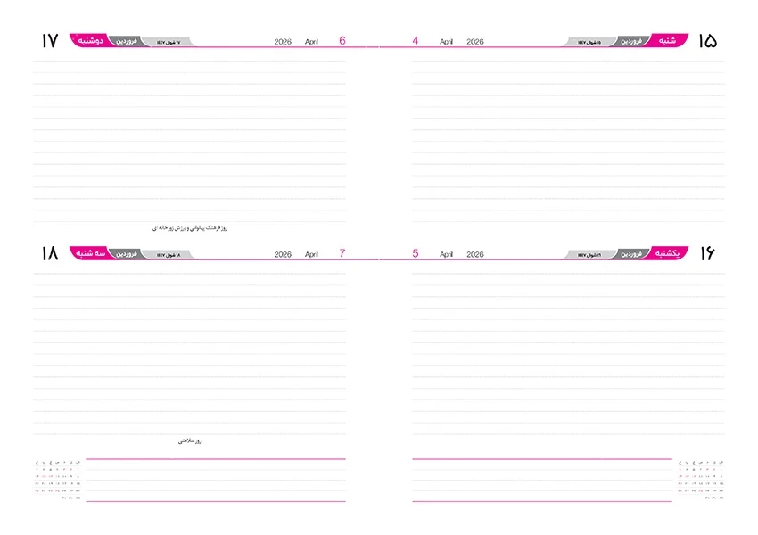 فایل pdf سررسید، سایز وزیری، دو روز در یک صفحه کد فایل 3725964