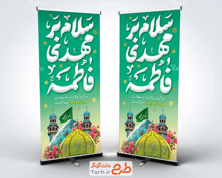 طرح بنر استند ولادت امام زمان با خوشنویسی سلام بر مهدی فاطمه کد فایل 3792615