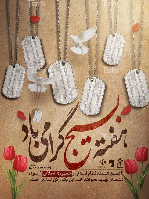 طرح آماده پوستر هفته بسیج با فرمت psd و قابل ویرایش در نرم افزار فتوشاپ به صورت لایه باز توسط تیم طراحان طرح دات آی آر طراحی شده است. در طرح لایه باز هفته بسیج از تصاویر و المان های با کیفیت و متناسب با استاندارد چاپ استفاده گردیده است. پوستر هفته بسیج لایه باز شامل خوشنویسی هفته بسیج گرامی باد، عکس گل و پلاک شهید می باشد که المان های استفاده شده در بنر لایه باز هفته بسیج قابلیت ویرایش، جابه جایی و تغییر سایز را دارا بوده و شما می توانید متناسب با سلیقه خودتان طرح بنر آغاز هفته بسیج را ویرایش نمایید.