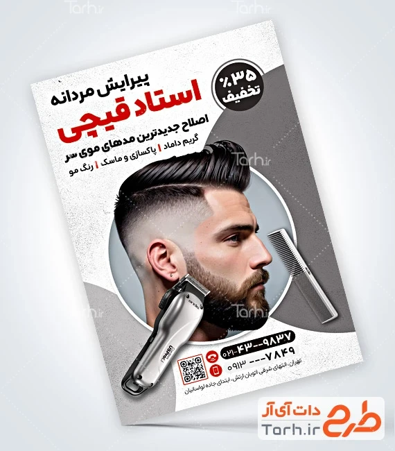 ابعاد قابل چاپ طرح لایه باز تراکت آرایشگاه آقایان و کاربرد آن