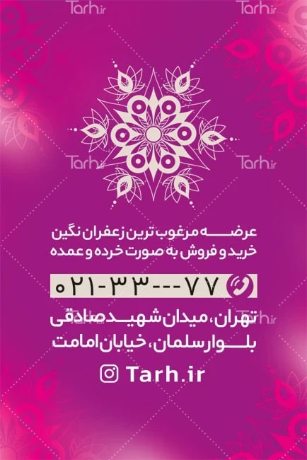 دانلود طرح کارت ویزیت فروشگاه زعفران با فرمت psd و قابل ویرایش در نرمافزار فتوشاپ بهصورت لایه باز و پشت و رو (دو رو) توسط تیم طراحان طرح دات آی آر طراحی شده است. طرح کارت ویزیت زعفران فروشی از تصاویر و المانهای باکیفیت و متناسب با استاندارد چاپ استفادهشده، همچنین نکات مهم در طرح کارت ویزیت مانند رنگبندی، رعایت حاشیه، فاصلهها، فضای کافی برای درج متن، سایز و نوع فونت مناسب طراحی کارت ویزیت و ... رعایت گردیده است. نمونه کارت ویزیت زعفران فروشی شامل عکس گل زعفران و متن تبلیغاتی فروش زعفران میباشد که المانهای استفادهشده در طرح کارت ویزیت فروش زعفران قابلیت ویرایش، جابهجایی و تغییر سایز را دارا بوده و شما میتوانید متناسب باسلیقه خودتان کارت ویزیت لایه باز سوغات مشهد را ویرایش نمایید، همچنین با تغییر تصاویر و متنها میتوانید طرح کارت ویزیت فروشگاه زعفران را به طرح کارت ویزیت کسب و کار مد نظر خود شخصی سازی نمایید.