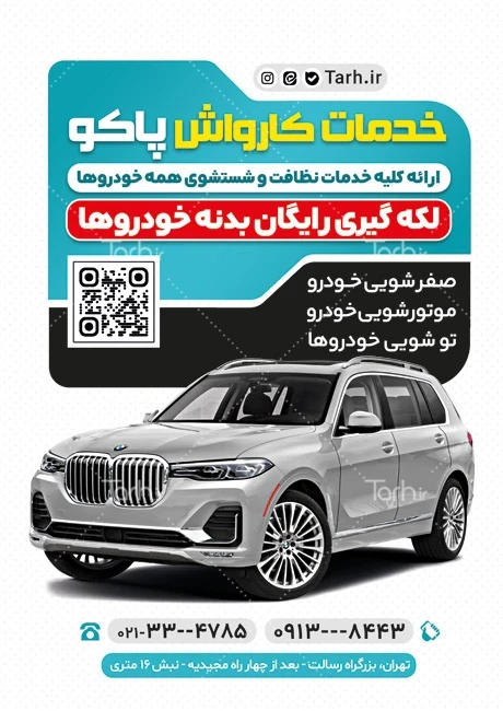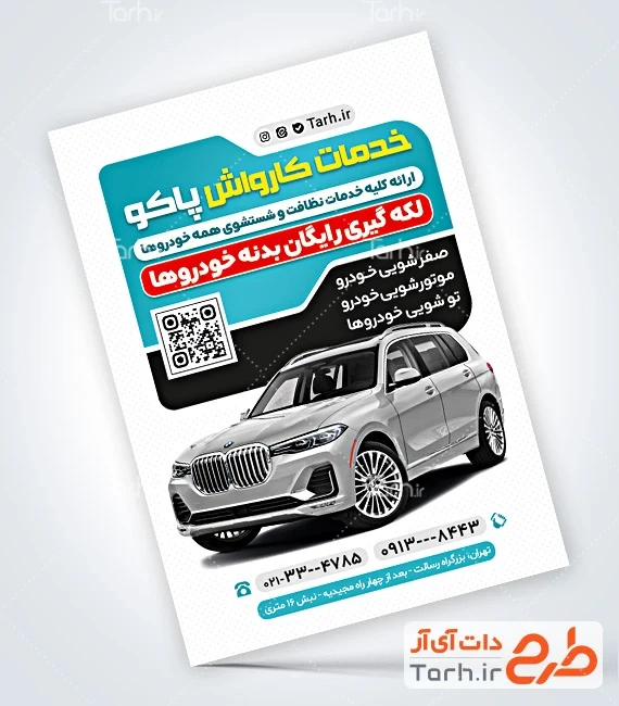 طرح تراکت تبلیغاتی کارواش ماشین با قابلیت ویرایش المان ها کد فایل 3854012
