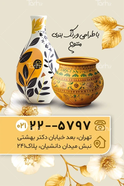 طرح آماده کارت ویزیت کارگاه سفالگری با قابلیت ویرایش المان ها کد فایل 3867402
