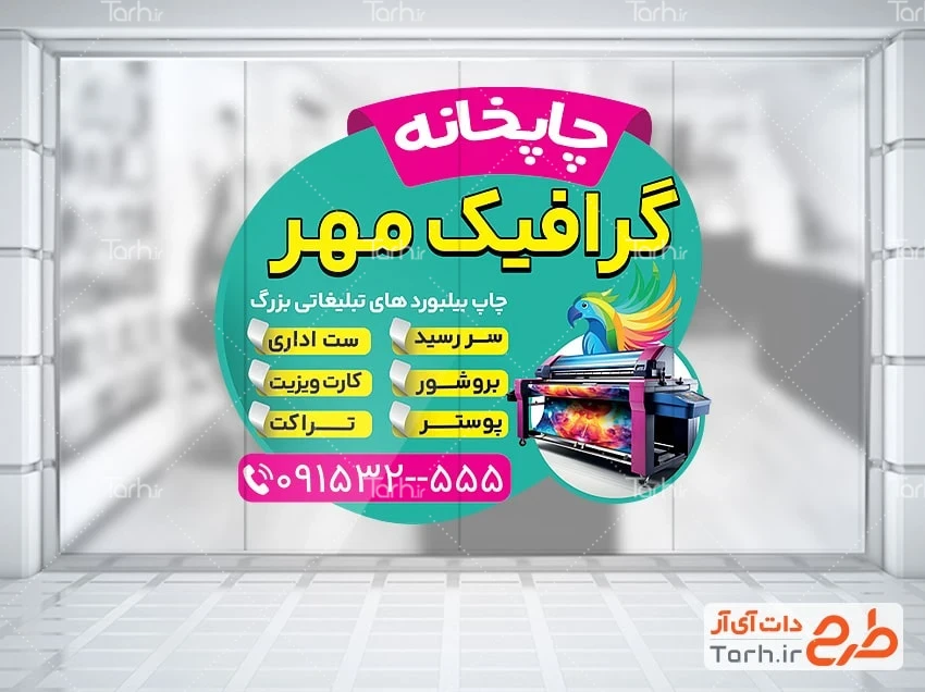 طرح استیکر شیشه چاپخانه با عکس دستگاه چاپ کد فایل 3869570