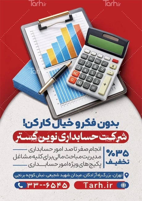 نمونه تراکت آماده دفتر حسابداری با قابلیت ویرایش المان ها کد فایل 3895410