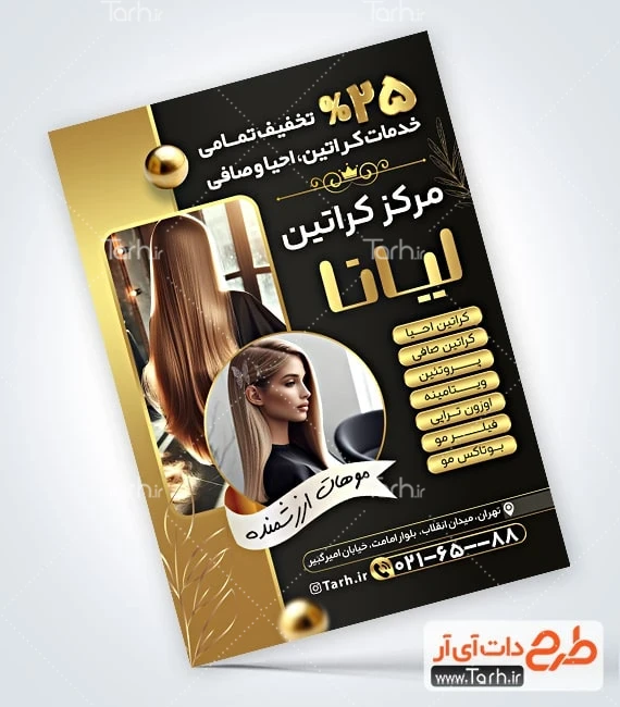 طرح خام تراکت مرکز کراتین مو با قابلیت ویرایش المان ها کد فایل 3904618