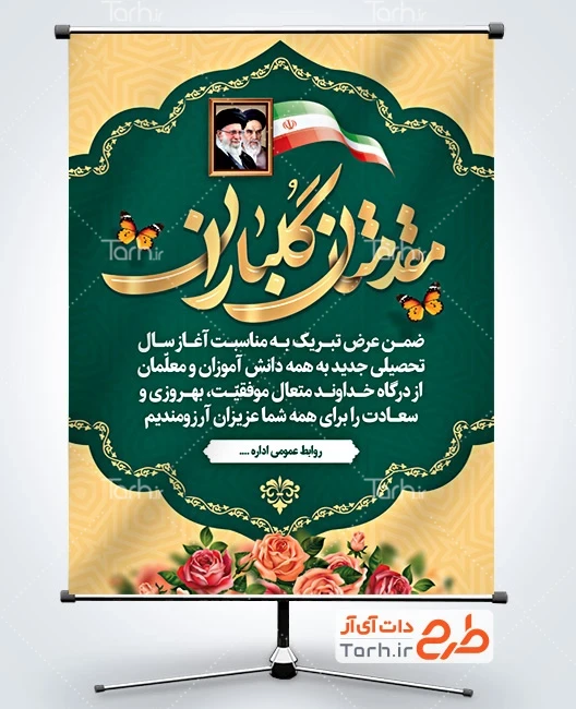 طرح پوستر خوش آمدگویی بازگشایی مدارس با فرمت psd و قابل ویرایش در نرم افزار فتوشاپ به صورت لایه باز توسط تیم طراحان طرح دات آی آر طراحی شده است. در طرح لایه باز خیر مقدم بازگشایی مدارس از تصاویر و المان های با کیفیت و متناسب با استاندارد چاپ استفاده گردیده است. طرح پوستر خیر مقدم دانش آموزان و دانشجویان شامل تایپوگرافی مقدمتان گلباران، وکتور پرچم ایران و گل می باشد که المان های استفاده شده در بنر لایه باز بازگشایی مدارس قابلیت ویرایش، جابه جایی و تغییر سایز را دارا بوده و شما می توانید متناسب با سلیقه خودتان طرح خوش آمدگویی به دانش آموزان و دانشجویان را ویرایش نمایید.