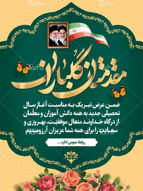 طرح پوستر خوش آمدگویی بازگشایی مدارس با خوشنویسی مقدمتان گلباران کد فایل 3904657