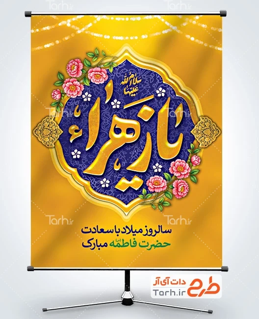 طرح آماده بنر میلاد حضرت فاطمه شامل خوشنویسی یا زهرا کد فایل 3910876