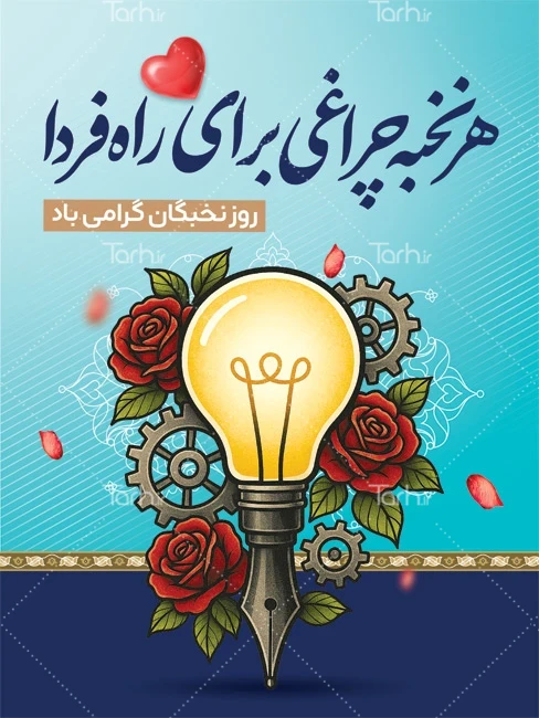 طرح بنر روز نخبگان با فرمت psd و قابل ویرایش در نرم افزار فتوشاپ به صورت لایه باز توسط تیم طراحان طرح دات آی آر طراحی شده است. در طرح لایه باز بنر روز نخبگان از تصاویر و المان های با کیفیت و متناسب با استاندارد چاپ استفاده گردیده است. پوستر روز نخبگان لایه باز شامل وکتور لامپ می باشد که المان های استفاده شده در بنر لایه باز روز ملی نخبگان قابلیت ویرایش، جابه جایی و تغییر سایز را دارا بوده و شما می توانید متناسب با سلیقه خودتان طرح روز نخبگان را ویرایش نمایید.