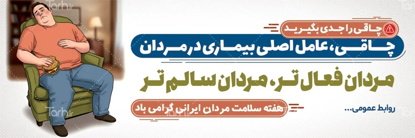 طرح پلاکارد هفته سلامت مردان دارای تصویرسازی مرد چاق کد فایل 3917542