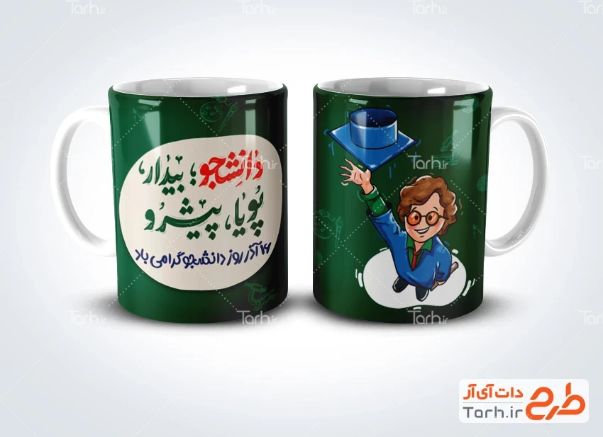 طرح لایه باز ماگ تبریک روز دانشجو با تصویرسازی دانشجو کد فایل 3924718