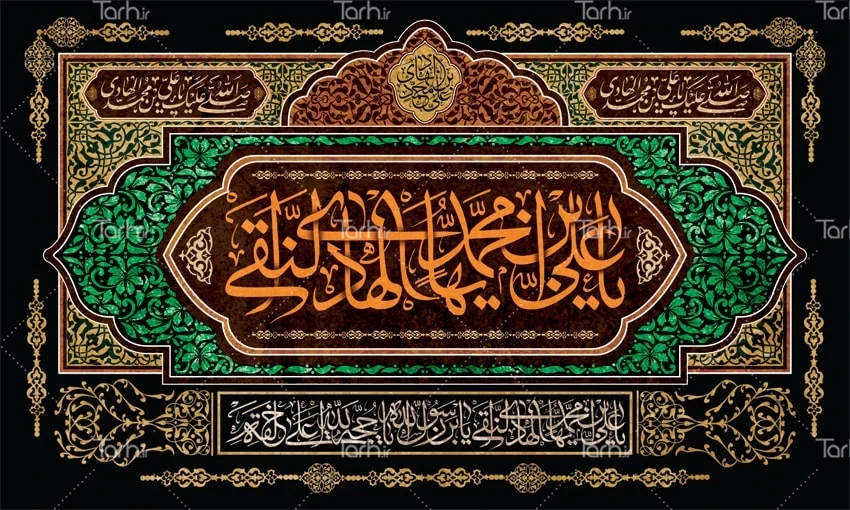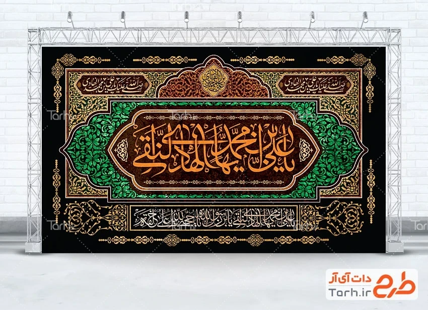 ابعاد قابل چاپ طرح بنر کتیبه پشت منبری شهادت امام هادی و کاربرد آن