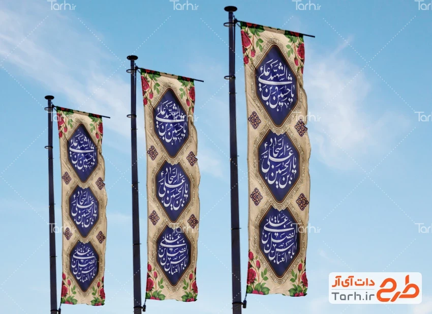 طرح پرچم میله ای اعیاد شعبانیه با فرمت psd و قابل ویرایش در نرم افزار فتوشاپ به صورت لایه باز توسط تیم طراحان طرح دات آی آر طراحی شده است. در طرح استند و لمپوست اعیاد شعبانیه از تصاویر و المان های با کیفیت و متناسب با استاندارد چاپ استفاده گردیده است. طرح لایه باز پرچم عمودی اعیاد شعبانیه شامل خوشنویسی یا حسین بن علی الشهید، یا علی بن الحسین السجاد، یا علی بن اباالفضل العباس می باشد که المان های استفاده شده در طرح پرچم پل اعیاد شعبانیه قابلیت ویرایش، جابه جایی و تغییر سایز را دارا بوده و شما می توانید متناسب با سلیقه خودتان طرح بنر شهری اعیاد شعبانیه را ویرایش نمایید.