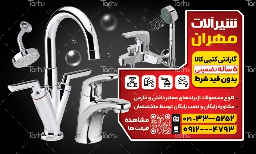 طرح پوستر شیرآلات بهداشتی با رنگ زمینه مشکی کد فایل 3980721