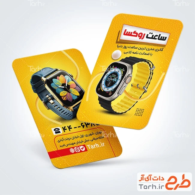 ابعاد طرح لایه باز کارت ویزیت فروشگاه ساعت مچی در جدول ویژگیهای فایل درجشده و با توجه به لایه باز بودن و کیفیت بالای طرح فروش ساعت، قابلیت ویرایش و تبدیل به سایز دلخواه مانند کارت ویزیت مربع، دایره، برش خاص، قالب اختصاصی و ... را دارا میباشد. کارت ویزیت خام فروشگاه ساعت قابلیت چاپ افست و چاپ دیجیتال روی انواع جنس کارت ویزیت مانند گلاسه، لمینت، کتان، کرافت، سلفون و پیویسی و ... را دارد. همچنین میتوان از طرح های کارت ویزیت جهت چاپ اتیکت، لیبل، کارت آویز و ... نیز استفاده کرد.
