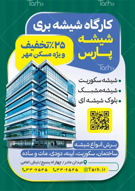 طرح تراکت تبلیغاتی شیشه بری شامل عکس ساختمان کد فایل 4037528