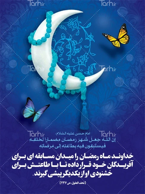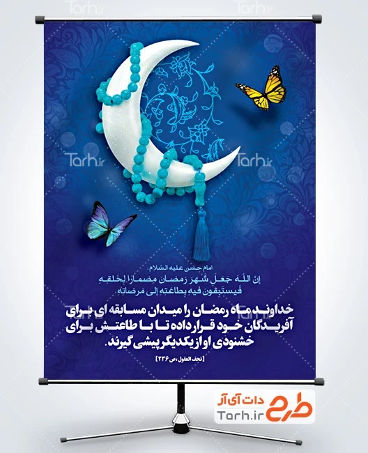 طرح پوستر خام رمضان با فرمت psd و قابل ویرایش در نرم افزار فتوشاپ به صورت لایه باز توسط تیم طراحان طرح دات آی آر طراحی شده است. در بنر ماه رمضان از تصاویر و المان های با کیفیت و متناسب با استاندارد چاپ استفاده گردیده است. بنر لایه باز ماه رمضان شامل حدیث از امام حسن در مورد ماه رمضان، عکس ماه با تسبیح و وکتور پروانه میباشد که المان های استفاده شده در طرح پوستر رمضان قابلیت ویرایش، جابه جایی و تغییر سایز را دارا بوده و شما می توانید متناسب با سلیقه خودتان طرح بنر رمضان را ویرایش نمایید.