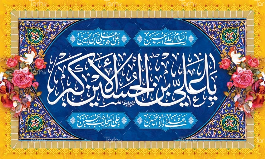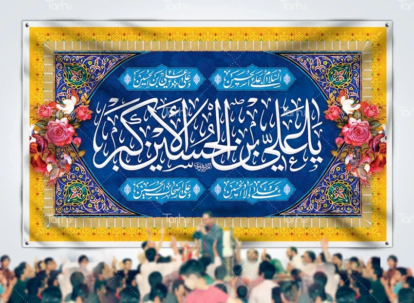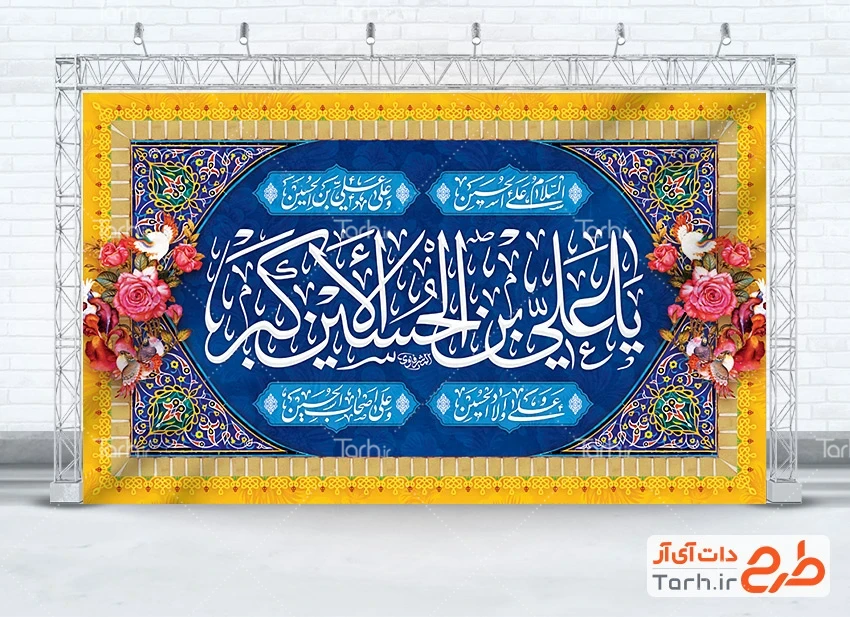 طرح بنر جایگاه ولادت حضرت علی اکبر با خوشنویسی یا علی بن الحسین الاکبر کد فایل 4063172