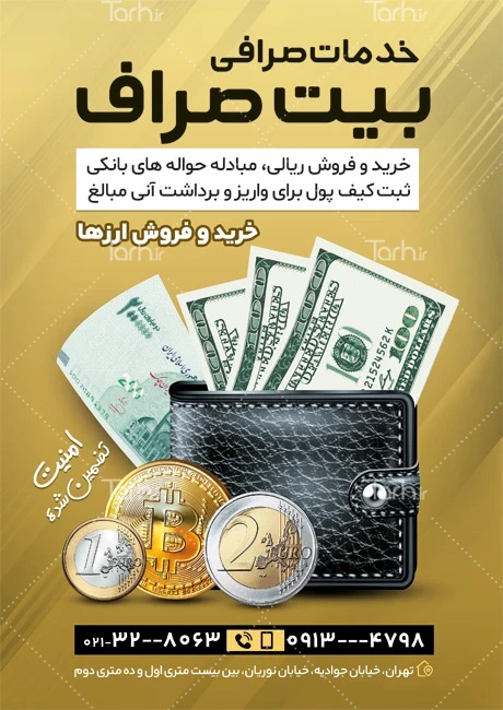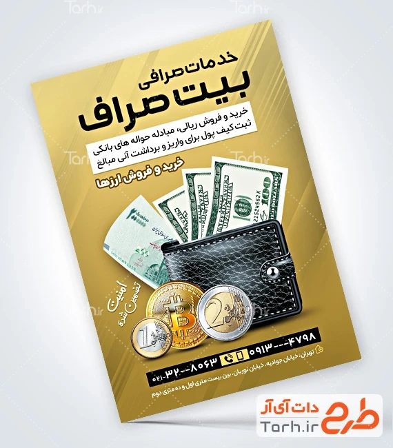 دانلود فایل تراکت صرافی با فرمت psd و قابل ویرایش در نرمافزار فتوشاپ بهصورت لایه باز توسط تیم طراحان طرح دات آی آر طراحی شده است. در نمونه تراکت صرافی از تصاویر و المانهای باکیفیت و متناسب با استاندارد چاپ استفادهشده، همچنین نکات مهم در طرح تراکت صرافی مانند رنگبندی، رعایت حاشیه، فاصلهها، فضای کافی برای درج متن، سایز و نوع فونت مناسب طراحی تراکت و ... رعایت گردیده است. طرح لایه باز تراکت صرافی شامل عکس کیف پول و سکه و رنگبندی مشکی طلایی میباشد که المانهای استفادهشده در طرح خام تراکت صرافی قابلیت ویرایش، جابهجایی و تغییر سایز را دارا بوده و شما میتوانید متناسب باسلیقه خودتان تراکت لایه باز صرافی را ویرایش نمایید، همچنین با تغییر تصاویر و متنها میتوانید طرح تراکت خدمات صرافی را به طرح تراکت کسب و کار مد نظر خود شخصی سازی نمایید.
