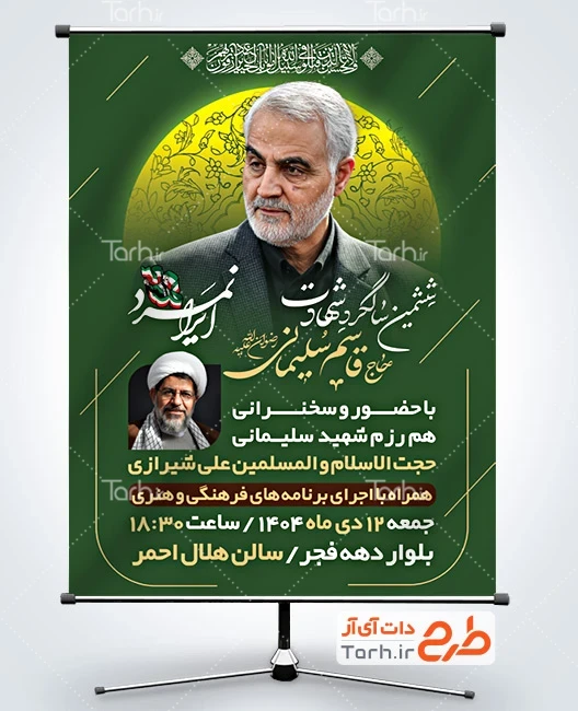 ابعاد قابل چاپ بنر اطلاعیه مراسم عزاداری شهادت سردار سلیمانی و کاربرد آن