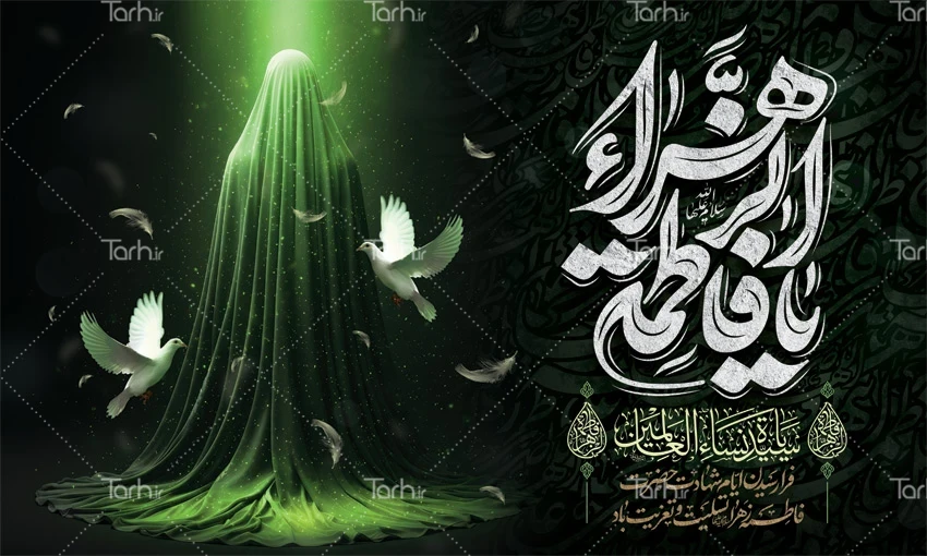 طرح دکور ایام فاطمیه لایه باز شامل تایپوگرافی یا فاطمه الزهرا کد فایل 4210367