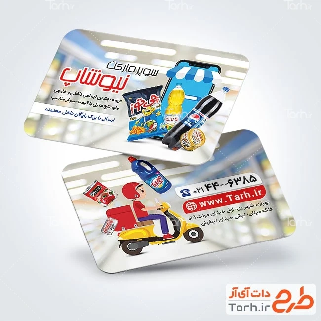 ابعاد طرح لایه باز کارت ویزیت سوپر مارکت در جدول ویژگیهای فایل درجشده و با توجه به لایه باز بودن و کیفیت بالای طرح سوپری، قابلیت ویرایش و تبدیل به سایز دلخواه مانند کارت ویزیت مربع، دایره، برش خاص، قالب اختصاصی و ... را دارا میباشد. کارت ویزیت خام سوپرمارکت و سوپری قابلیت چاپ افست و چاپ دیجیتال روی انواع جنس کارت ویزیت مانند گلاسه، لمینت، کتان، کرافت، سلفون و پیویسی و ... را دارد. همچنین میتوان از طرح های کارت ویزیت جهت چاپ اتیکت، لیبل، کارت آویز و ... نیز استفاده کرد.
