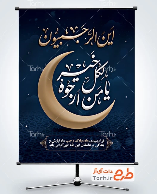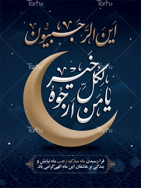 طرح پوستر حلول ماه رجب با خوشنویسی یا من ارجوه لکل خیر کد فایل 4259836