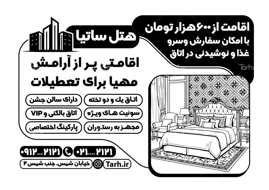 - دسته بندی : تراکت سیاه سفید هتل و مهمانسرا