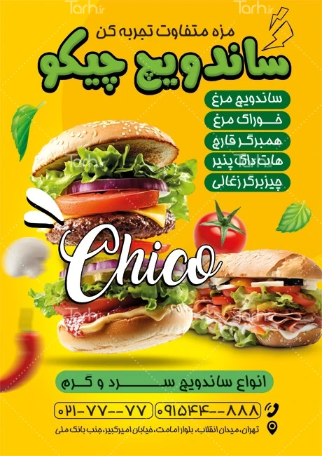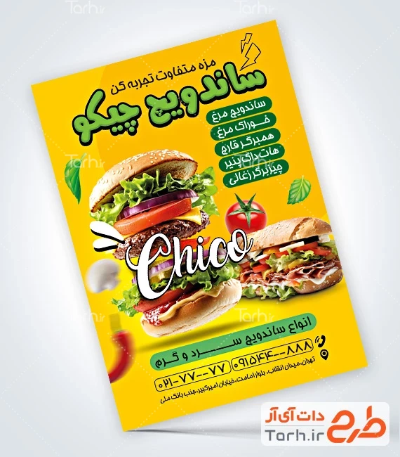 - دسته بندی : تراکت ساندویچ، فست فود و پیتزا