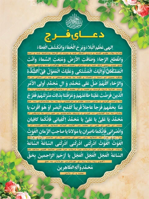 بنر لایه باز دعای فرج با فرمت psd و قابل ویرایش در نرم افزار فتوشاپ به صورت لایه باز توسط تیم طراحان طرح دات آی آر طراحی شده است. در طرح آماده بنر دعای فرج با کیفیت از تصاویر و المان های با کیفیت و متناسب با استاندارد چاپ استفاده گردیده است. طرح لایه باز دعای فرج شامل متن دعای الهی عظم البلا و کادر اسلیمی می باشد که المان های استفاده شده در پوستر لایه باز دعای فرج قابلیت ویرایش، جابه جایی و تغییر سایز را دارا بوده و شما می توانید متناسب با سلیقه خودتان پوستر خام دعا فرج را ویرایش نمایید.