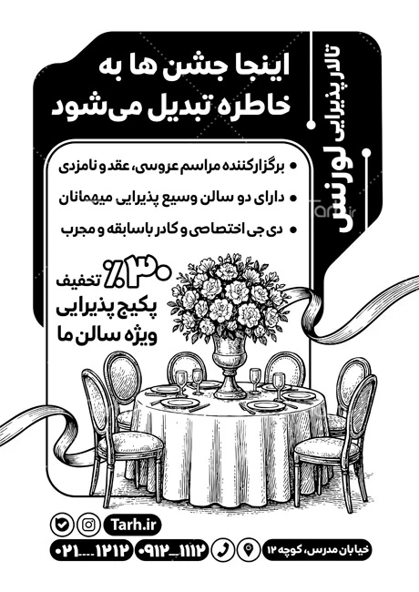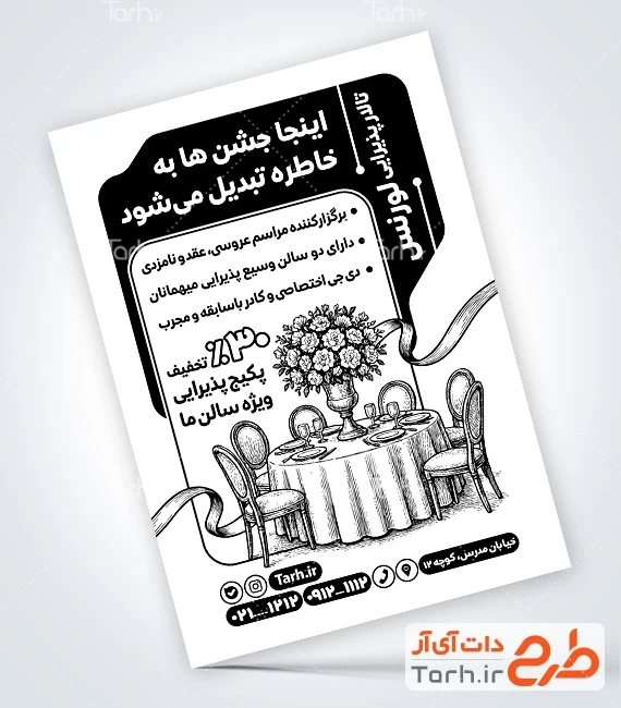 - دسته بندی : تراکت سیاه سفید تالار پذیرایی