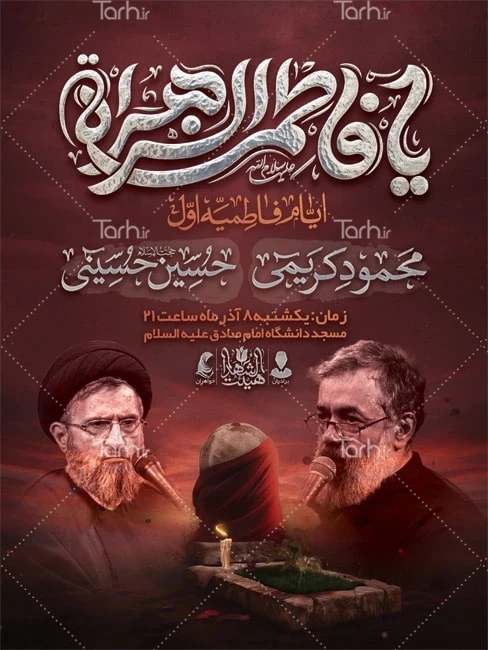طرح لایه باز پوستر اطلاعیه شهادت حضرت فاطمه با تایپوگرافی یا فاطمه الزهرا کد فایل 4365278