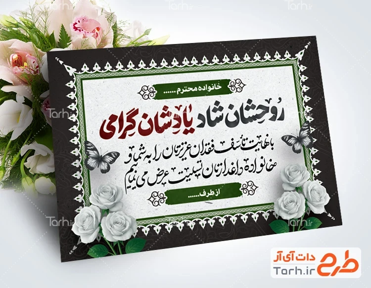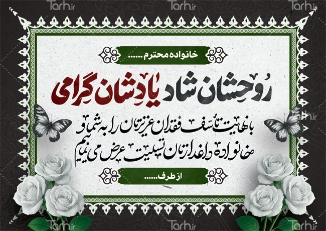 طرح خام کارت ترحیم شامل خوشنویسی روحشان شاد یادشان گرامی کد فایل 4367082