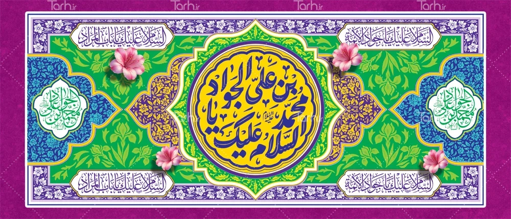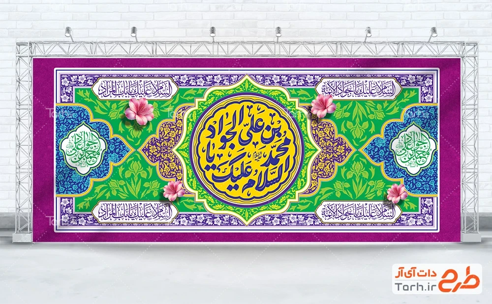 طرح کتیبه پشت منبر میلاد امام جواد با قابلیت ویرایش المان ها کد فایل 4368721