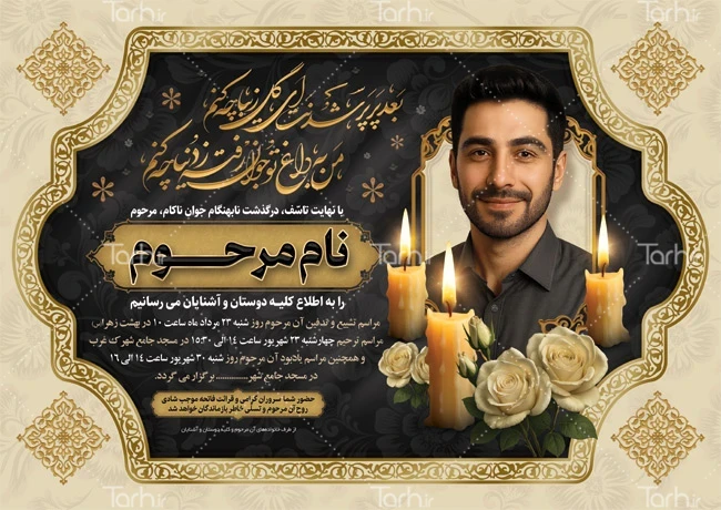 طرح خام آگهی ترحیم جوان ناکام دارای وکتور شمع و گل کد فایل 4379680