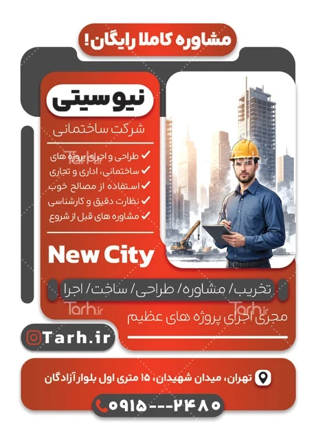 نمونه تراکت آماده شرکت ساختمانی با تصویر مهندس ساختمان کد فایل 4386215