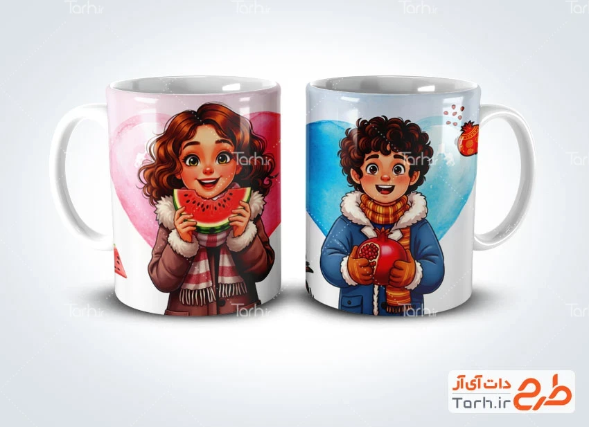مشخصات طرح لایه باز ماگ ست دو نفره شب یلدا و کاربرد آن