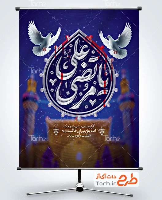 طرح بنر خام شهادت امام علی با فرمت psd و قابل ویرایش در نرم افزار فتوشاپ به صورت لایه باز توسط تیم طراحان طرح دات آی آر طراحی شده است. در پوستر خام شهادت حضرت علی و شب قدر از تصاویر و المان های با کیفیت و متناسب با استاندارد چاپ استفاده گردیده است. طرح بنر شهادت حضرت علی شامل خوشنویسی یا مرتضی علی و وکتور کبوتر می باشد که المان های استفاده شده در بنر لایه باز شهادت امام علی قابلیت ویرایش، جابه جایی و تغییر سایز را دارا بوده و شما می توانید متناسب با سلیقه خودتان طرح لایه باز شهادت حضرت علی را ویرایش نمایید.
