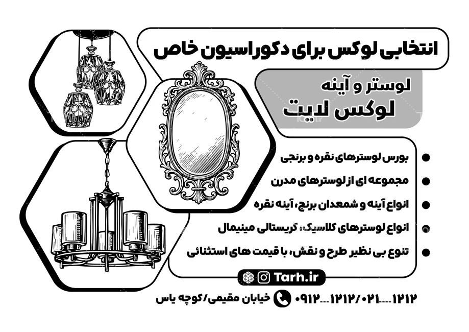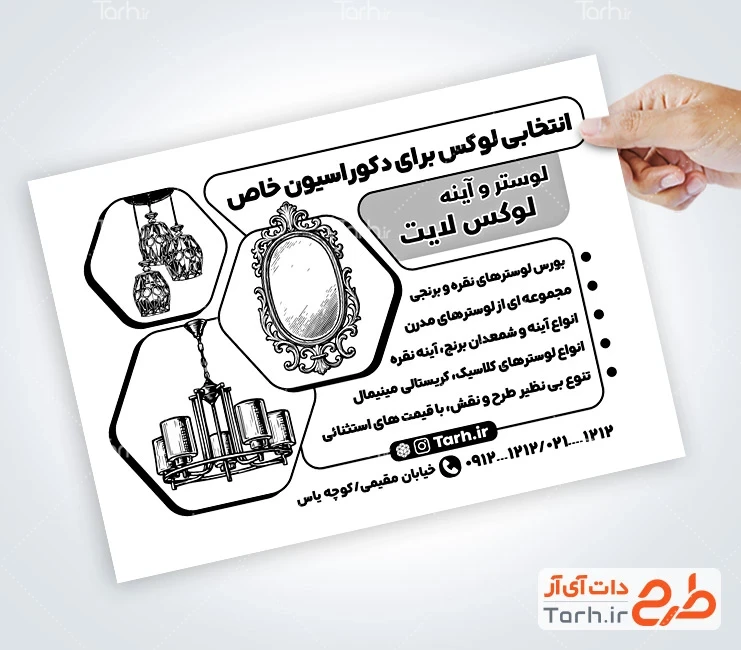 - دسته بندی : تراکت سیاه سفید گالری لوستر و آینه