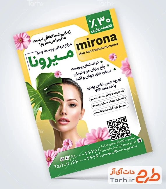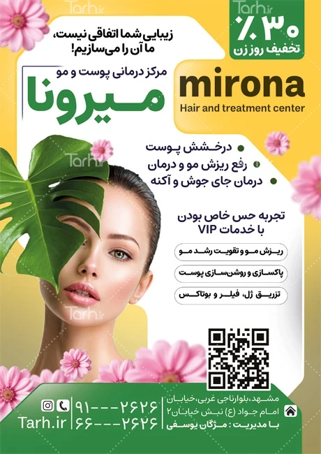 ابعاد طرح تراکت متخصص پوست و مو در جدول ویژگیهای فایل درجشده و با توجه به لایه باز بودن و کیفیت بالای طرح متخصص پوست و مو، قابلیت ویرایش و تبدیل به سایز دلخواه، همچنین چاپ روی متریالهای مختلف مانند بنر، کاغذ، گلاسه و ... را دارا میباشد. برای مثال تراکت آماده متخصص پوست و مو در ابعاد A4 رزولوشن 300 dpi قابلیت چاپ بنر و لارج فرمت در ابعاد بزرگتر مانند 3 در 4 متر و بدون افت کیفیت را دارا میباشد. تراکت ها به عنوان یک ابزار تبلیغاتی بسیار موثر محسوب می شوند و به دلیل هزینه کم و تأثیر بالا، در بسیاری از کسب و کارها به عنوان روشی برای تبلیغات و رویدادهای مختلف مورد استفاده قرار می گیرند.