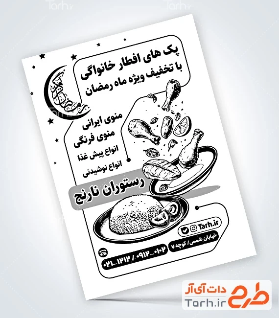 - دسته بندی : تراکت سیاه سفید رستوران و کبابی