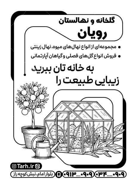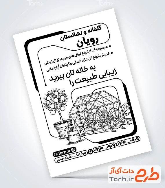 ابعاد قابل چاپ طرح تراکت سیاه سفید گلخانه و نهالستان و کاربرد آن