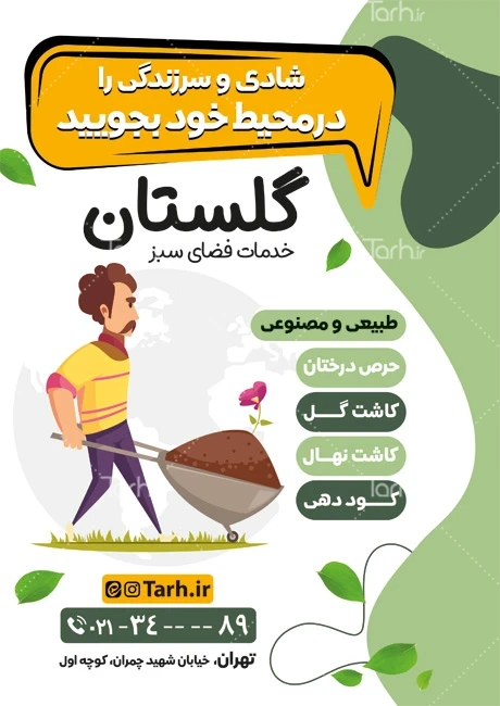 دانلود طرح تراکت خدمات باغبانی با فرمت psd و قابل ویرایش در نرمافزار فتوشاپ بهصورت لایه باز توسط تیم طراحان طرح دات آی آر طراحی شده است. در نمونه تراکت خدمات فضای سبز از تصاویر و المانهای باکیفیت و متناسب با استاندارد چاپ استفادهشده، همچنین نکات مهم در طرح تراکت خدمات فضای سبز مانند رنگبندی، رعایت حاشیه، فاصلهها، فضای کافی برای درج متن، سایز و نوع فونت مناسب طراحی تراکت و ... رعایت گردیده است. طرح لایه باز تراکت باغبانی شامل تصویرسازی باغبان میباشد که المانهای استفادهشده در طرح تراکت خدمات باغبانی قابلیت ویرایش، جابهجایی و تغییر سایز را دارا بوده و شما میتوانید متناسب باسلیقه خودتان تراکت لایه باز خدمات فضای سبز را ویرایش نمایید، همچنین با تغییر تصاویر و متنها میتوانید طرح تراکت خدمات کشاورزی را به طرح تراکت کسب و کار مد نظر خود شخصی سازی نمایید.