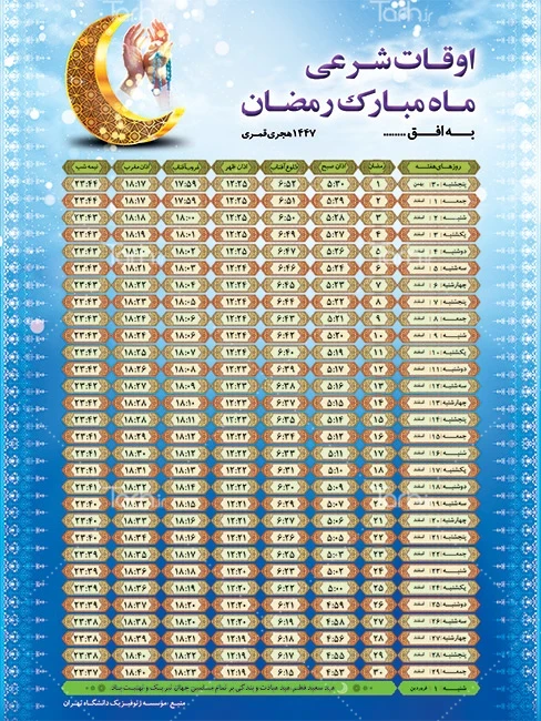 ابعاد قابل چاپ طرح اوقات شرعی ماه رمضان و کاربرد آن