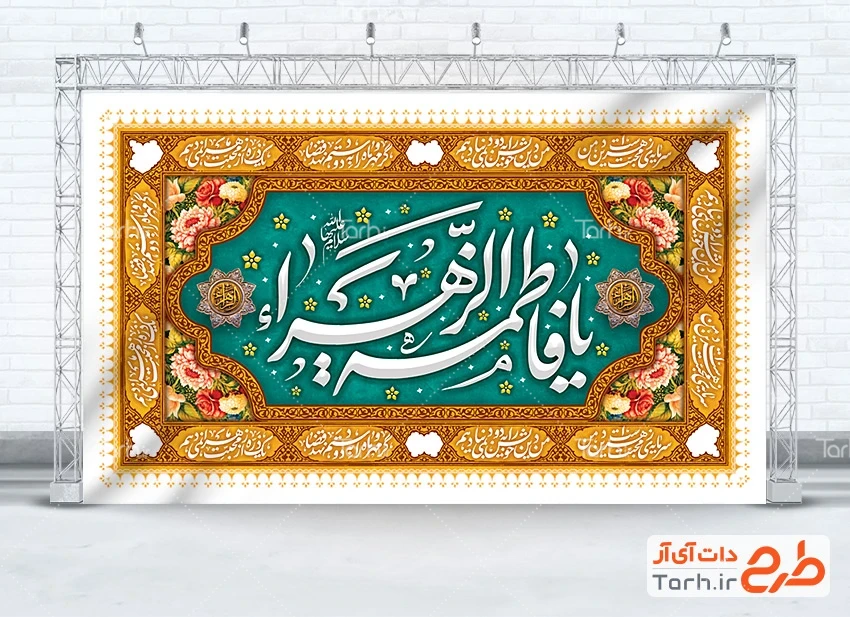 طرح دکور پشت سن ولادت حضرت فاطمه شامل خوشنویسی یا فاطمه الزهرا کد فایل 4632970